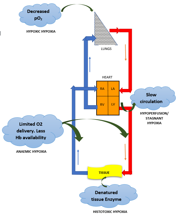 Hypoxia is O2 deficiency at the tissue level. Traditionally, hypoxia has been divided into four types.